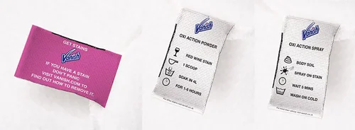 Placing Vanish tips on the washing instruction label where people would look for it. Relevant messages could match the clothing - For example a party top could have a message about what to do in the case of red wine spills or kids’ dungarees would have tips on how best to deal with grass stains.